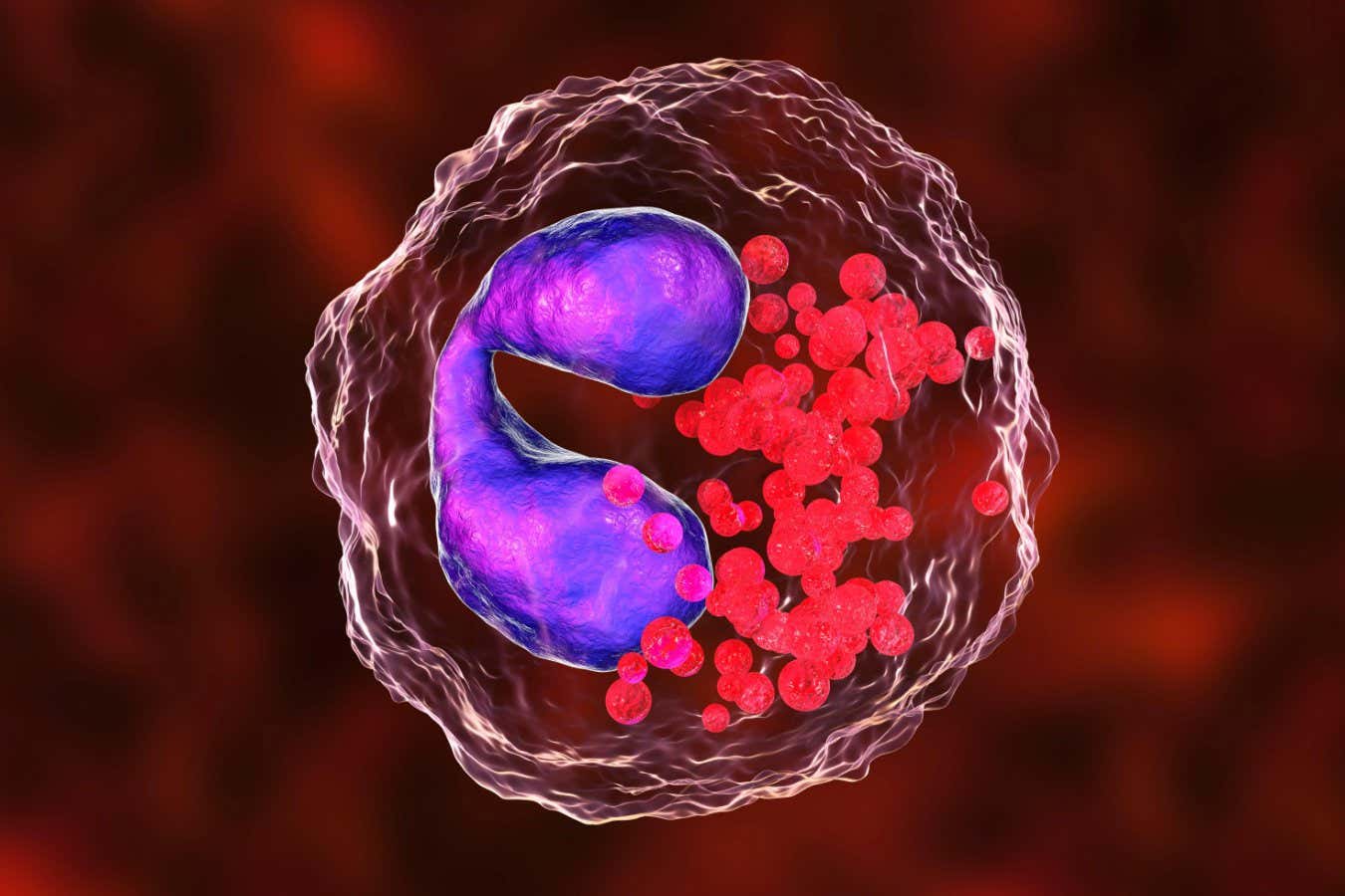 An eosinophil immune cell, which can be involved in asthma